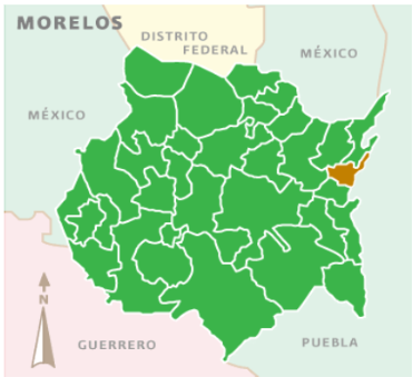 Figura 2. Mapa del estado de Morelos mostrando la ubicación del municipio de Zacualpan de Amilpas (INEGI.org,2024).