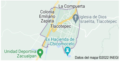 Figura 3. Mapa del poblado de Tlacotepec ubicado en el municipio de Zacualpan de Amilpas, Morelos, México (INEGI.ORG,2024).